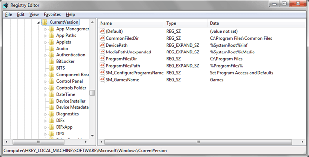 - Navigate to HKEY_LOCAL_MACHINE\SOFTWARE\Microsoft\Windows\CurrentVersion