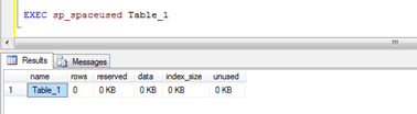 I must apologize for the very creative names I’m giving to my tables in my examplesJ. Okay, so now I have one table with no data in it. In other words, it should not hold any space in the database, right?