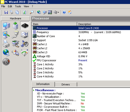 But wait, something’s fishy here… okay, let’s go for CPUID and their PC Wizard 2010 – and see what’s in there.