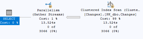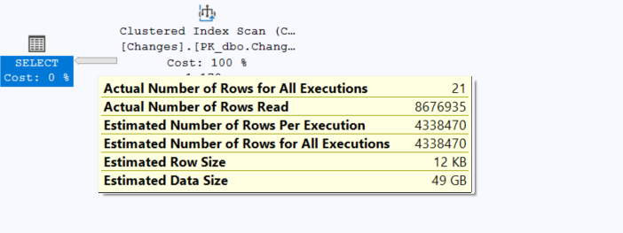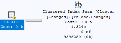 By hovering the mouse over the SELECT statement, no actual warning message was displayed, so we need to dig deeper into the XML plan: