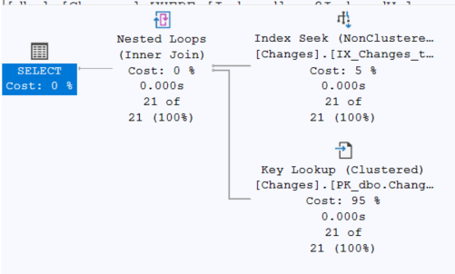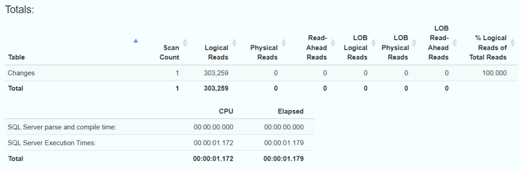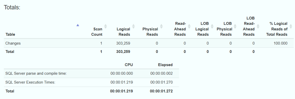 Having said that, let us see the execution plan now, as well as the IO for the dynamic SQL with our index with included columns: